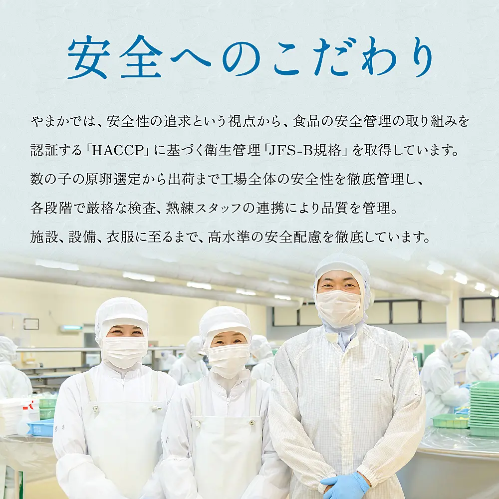 北海道産の数の子、北海道産の昆布、国産のスルメイカを使用し、食感、風味など素材の旨味をお楽しみいただけます。絡み合った三種類の具材を一口で食べられるよう小さい数の子を使用しております。