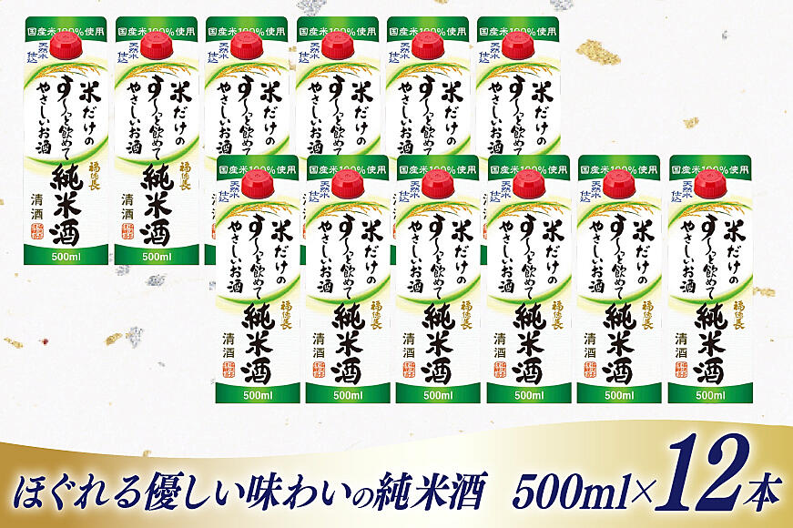 日本酒 福徳長 純米酒 米だけのす~っと飲めてやさしいお酒 500ml 紙パック 12本(1220267) [20745248]