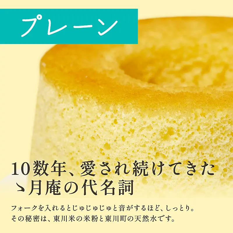 - ・プレーン:鶏卵(国産)、砂糖、米パウダー(米粉、小麦グルテン)、生クリーム、植物油、塩