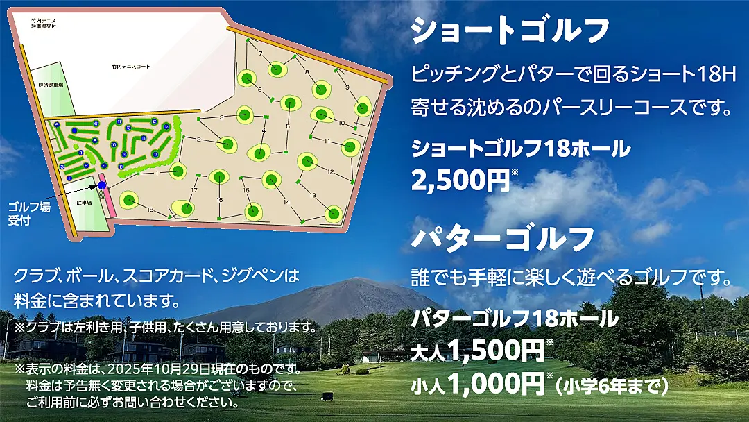 ・パターゴルフ18ホール 大人1500円 小人1000円(小学6年まで)