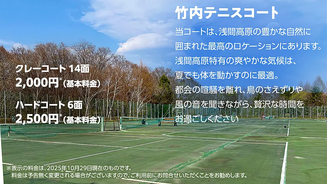 「北軽井沢 竹内ゴルフ 竹内テニス」で検索ください。