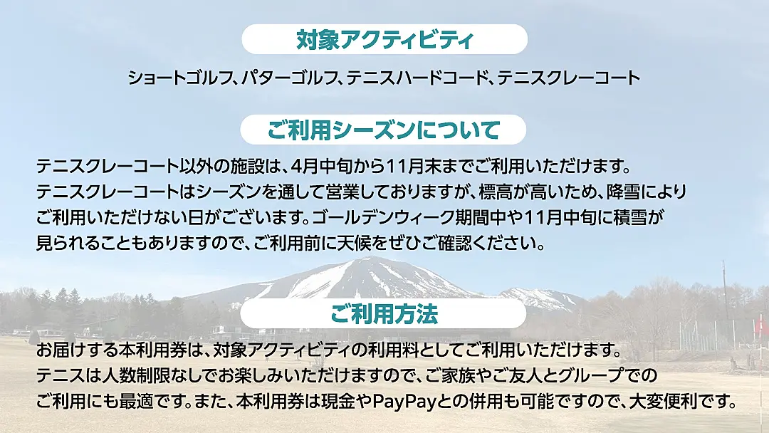 竹内ゴルフ・竹内テニスコートで使える利用券9000円分 北軽井沢 テニス テニスコート ショートゴルフ [AD006tu]