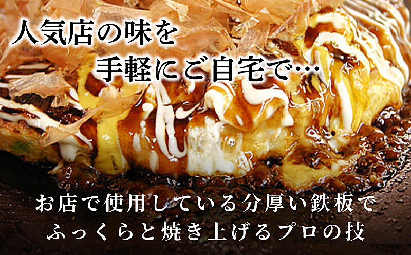 当店自慢の冷凍お好み焼は、店舗で使用している厚みのある鉄板で職人が1枚ずつ丁寧に焼き上げたものをそのまま急速冷凍。ふっくらとした焼きたての美味しさを、全国どこでもお楽しみいただけます。