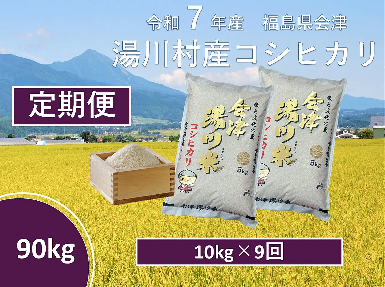 令和7年産湯川村産コシヒカリ 玄米90kg(10㎏×9回)【全9回定期便 R8.1月~R8.9月毎月発送】