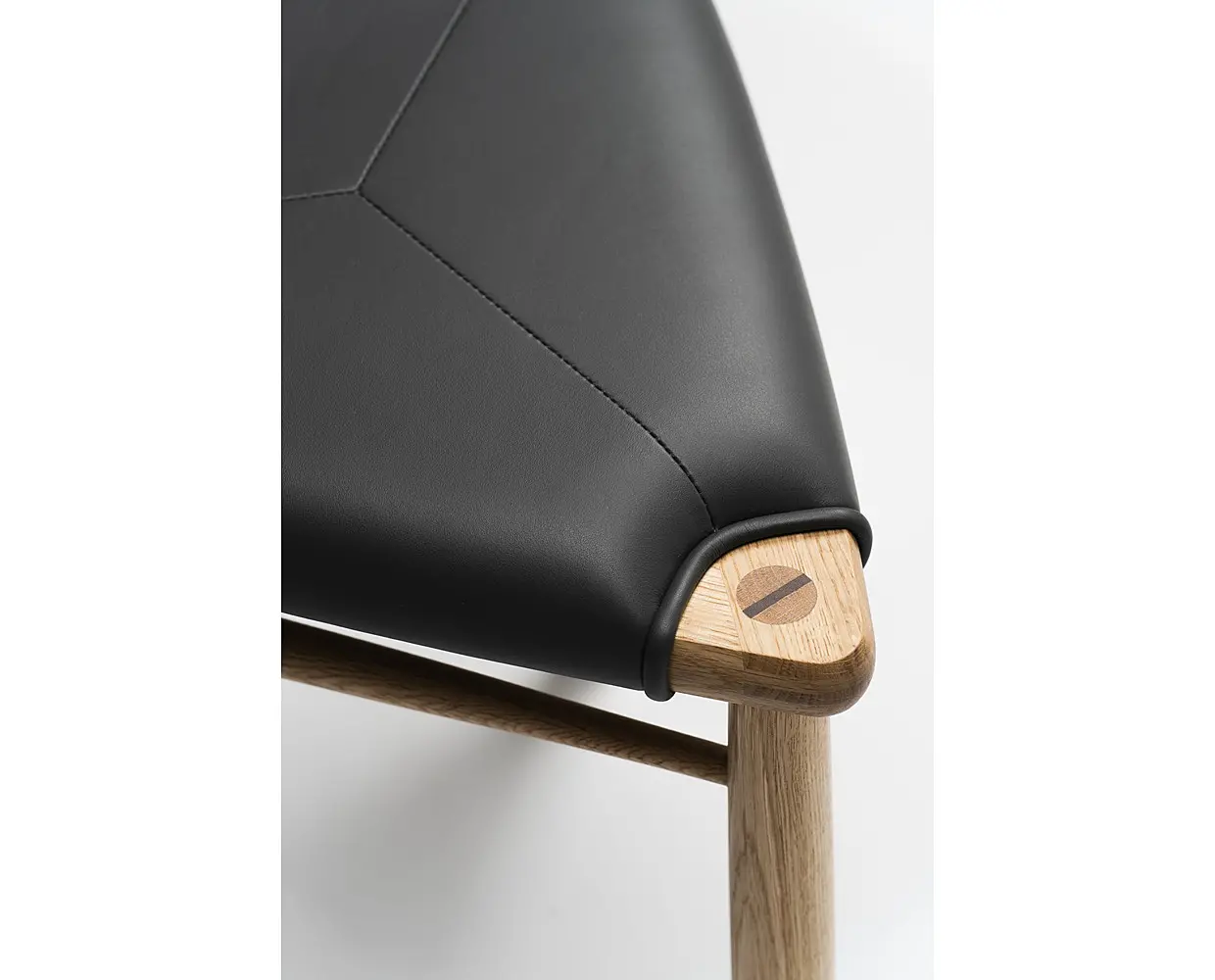 軽くて丈夫、3種類3本ずつの部材からなる、シンプルでミニマムな構造です。3本脚なのでどこに置いても安定し、暮らしの中で使い回しが効く重宝な小椅子です。