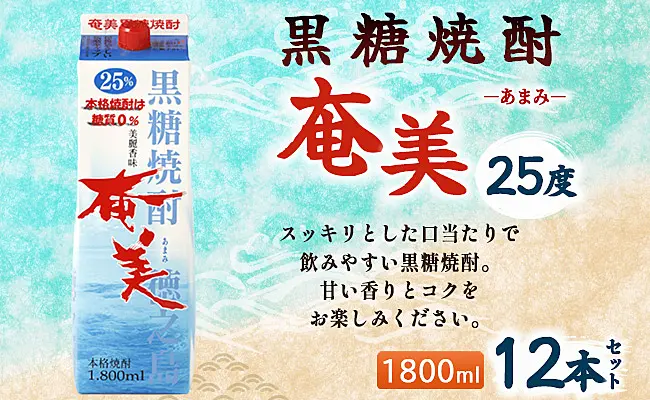 【鹿児島徳之島】黒糖焼酎 奄美 1800ml×12本セット 25度 奄美酒類 紙パック 計21.6L