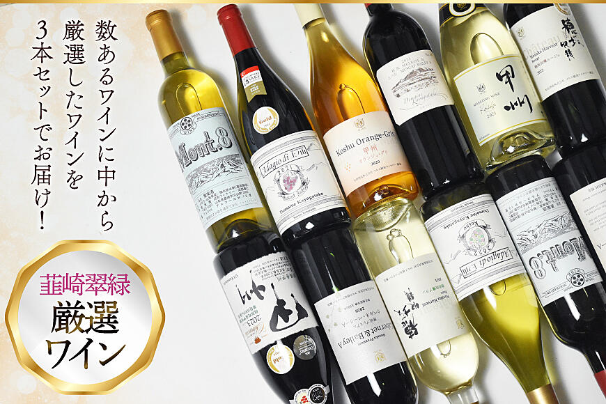 数あるワインに中から韮崎翠緑が厳選したワインを3本セットにしてお届け!