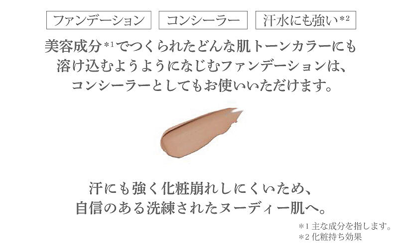 美容成分でつくられたどんな肌トーンカラーにも溶け込むようようになじむファンデーションは、コンシーラーとしてもお使いいただけます。
