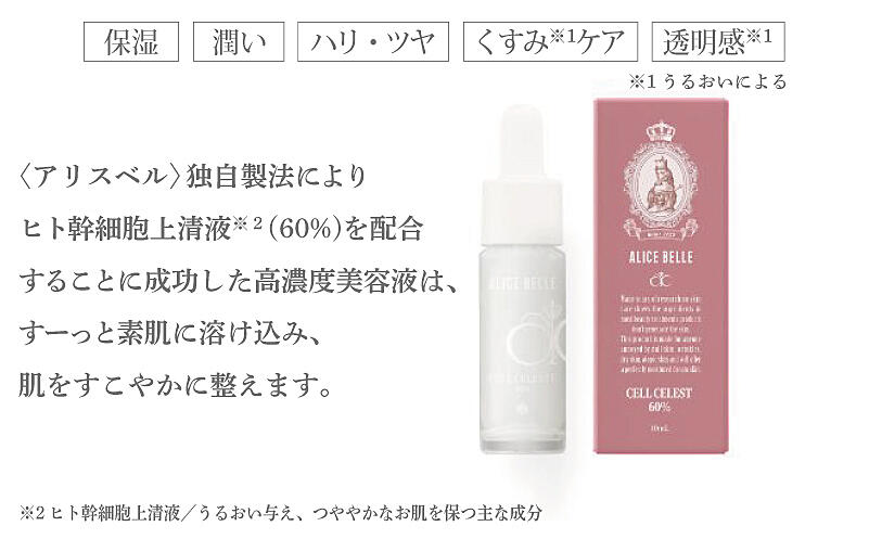 独自製法によりヒト幹細胞上清液※2(60%)を配合することに成功した高濃度美容液は、すーっと素肌に溶け込み、肌をすこやかに整えます。敏感になりがちなゆらぎ肌に、肌のキメとうるおいを整え、エステ帰りのようなバージョンアップスキンケアができるのが特徴です。