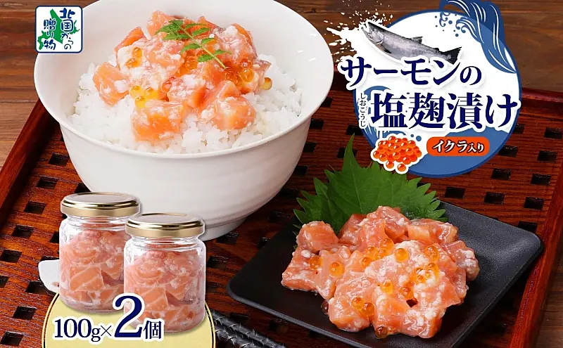 005A710 サーモンいくらの塩麹漬け 瓶 100g×2個【おつまみ 晩酌 お酒のあて ご飯のお供 北国からの贈り物】