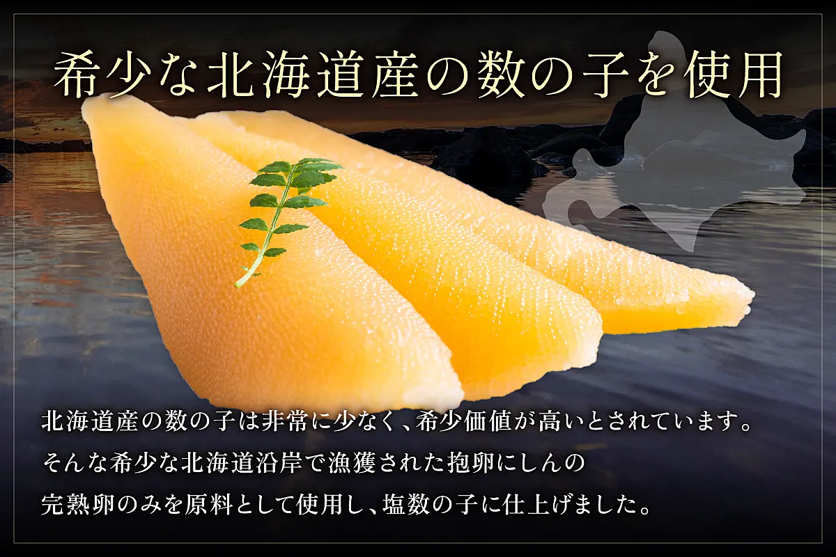 北海道沿岸で漁獲された、抱卵にしんの完熟卵のみを原料として使用しております。手間を省きご家庭で簡単に調理できるよう「うす皮」をむいておりますので、塩水を切って、必ず塩抜きをし、お好みの味付でお召し上がりください。