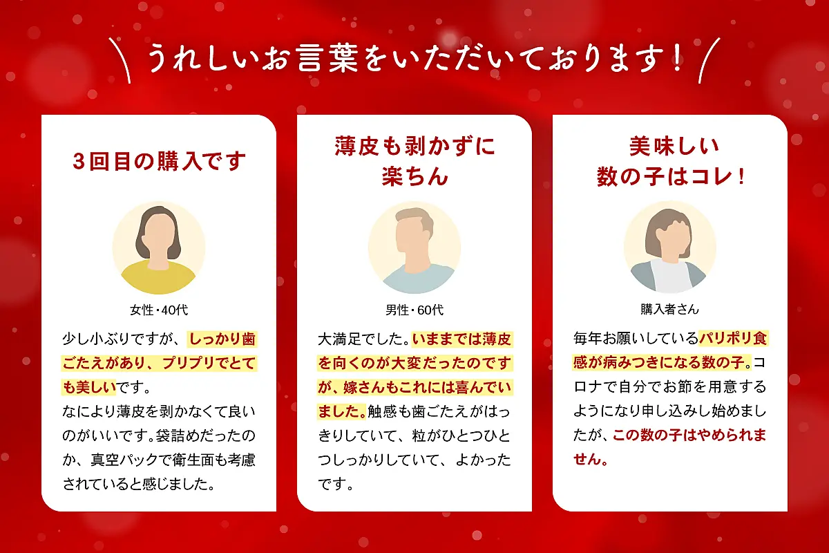 ・天候・水揚げ状況の影響や、ゴールデンウイーク、お盆期間、年末年始は発送までにお時間をいただく場合がございます。