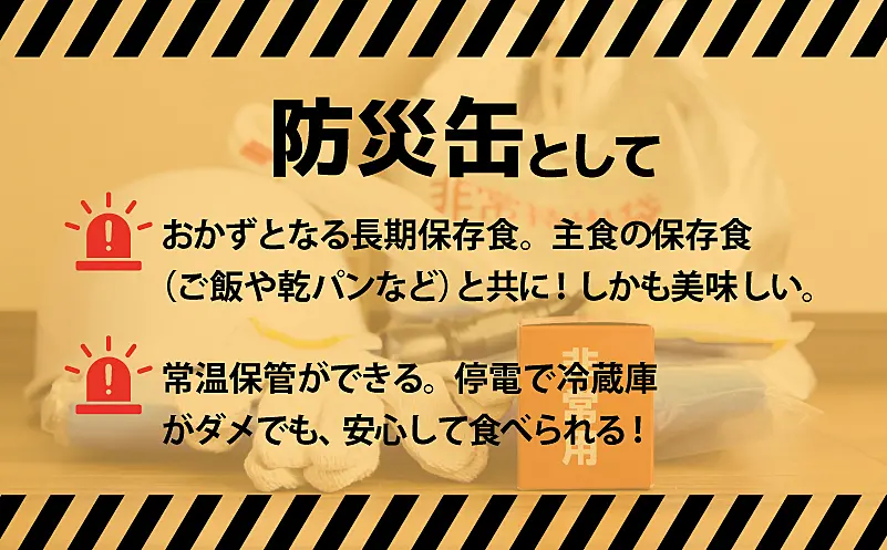 常温で製造日より5年の長期間保存が可能な缶詰のため、非常食・防災備蓄としても安心してお使いいただけます。