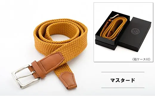 [P030] 組紐ベルト「kumeemo」オイルレザー(30mm) マスタード