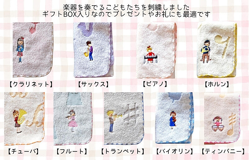 眺めているだけで心が弾むようなタオルは、大人はもちろん、吹奏楽部など音楽好きのお子さまにも大人気です。