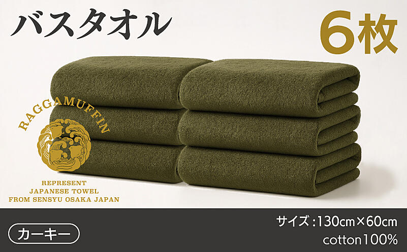 099H4134 高級泉州タオル ラガマフィン バスタオル カーキー 6枚
