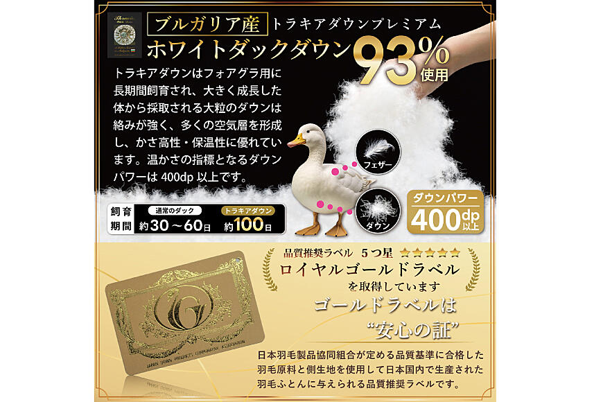 ■羽毛:ブルガリア産ホワイトダックダウン93% ロイヤルゴールドラベル