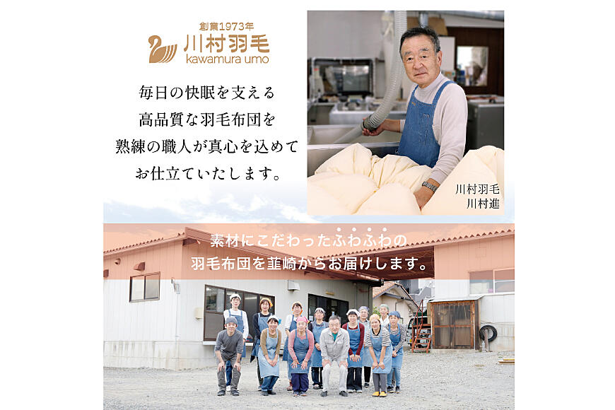 川村羽毛は韮崎市で1973年の創業から約50年にわたり、寝具を製造してまいりました。
