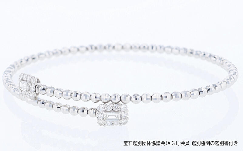 - プラチナ ダイヤモンド 形状記憶 バングル/ダイヤ計 0.52ct/形状記憶チタン線使用/ミラーボール2.5mm使用/ダイヤ部:縦約7.0mm、幅約5.4mm、厚さ約3.8mm/【対応サイズ】Mサイズ;内径 約148mm、Lサイズ;内径 約170mm/宝石鑑別団体協議会(A.G.L)会員 鑑別機関の鑑別書付き