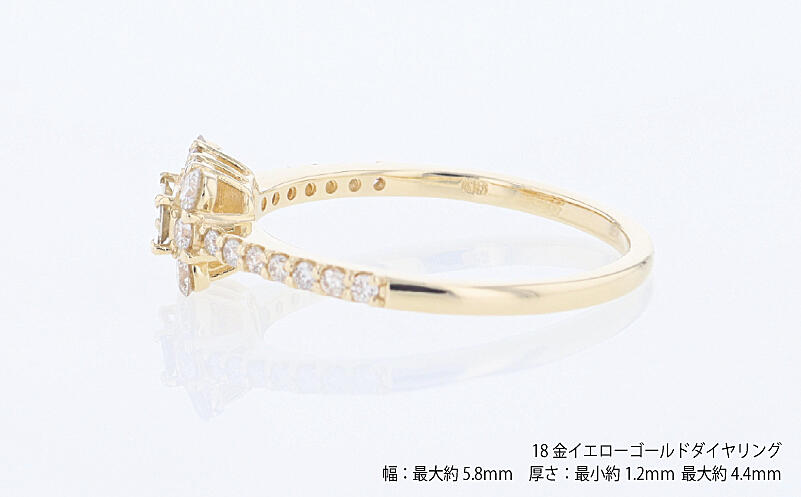 - 18金YG ダイヤモンド リング/ダイヤ計 0.50ct/宝石鑑別団体協議会(A.G.L)会員 鑑別機関の鑑別書付き/幅;最大約5.8mm、厚さ;最小約1.2mm、最大約4.4mm/対応サイズ;8号~16号⇒1号刻みで承ります。