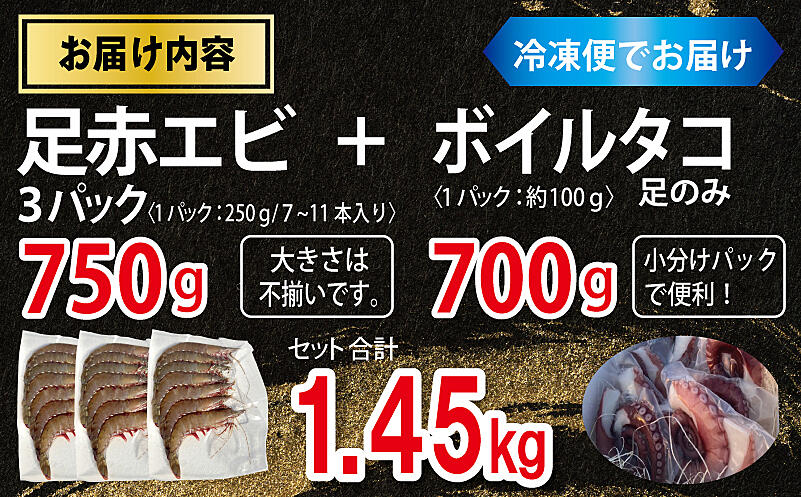 099H4167 足赤エビ 750g+冷凍ボイルタコ 足のみ 合計700g 計1.45kg