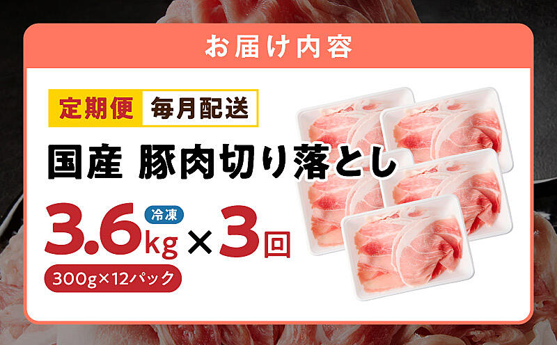 mrzZ013 【定期便】国産 豚肉 切り落とし 3.6kg×全3回