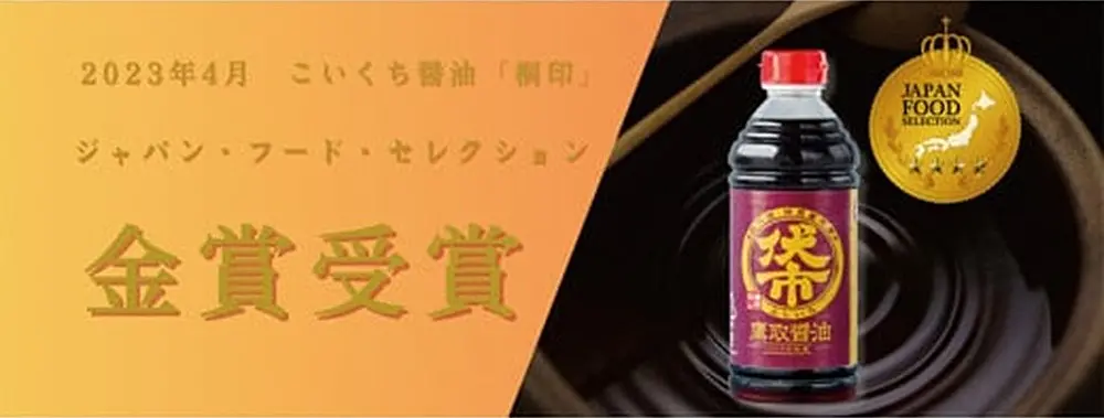 桐印は昔ながらの製法で、甘味と旨味のあるまろやかな味わいのお醤油に仕上げました。かけ醤油やお刺身などにおすすめ。