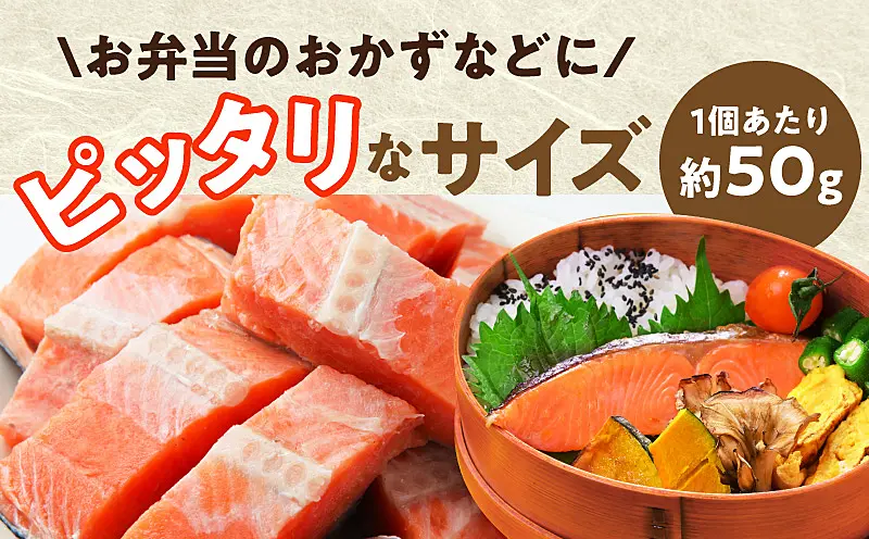 約50gの【お弁当サイズ】に仕上げた、銀鮭の切り身です。