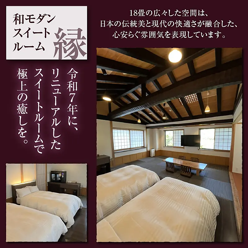 ※スイートルーム「縁」は一室のみの特別なお部屋となりますので、ご予約は6か月前より承りますので、お早めのご連絡をおすすめいたします。