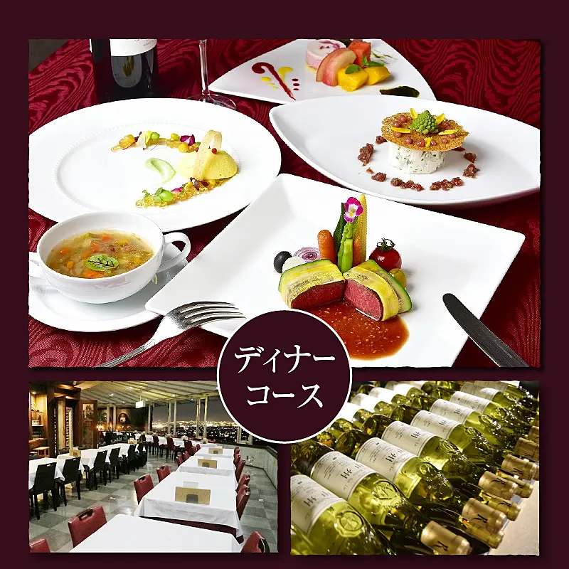 夕食は展望レストランで甲府盆地を見下ろすパノラマビューと当施設のシェフが腕によりをかけた勝沼コースをお召し上がりいただけます。