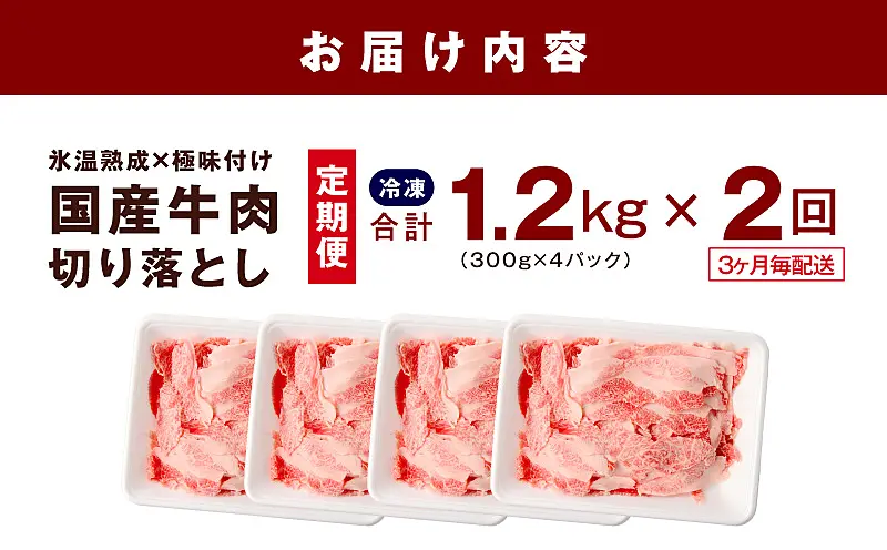 mrzZ078 【定期便】国産牛 切り落とし 1.2kg×全2回【2026年3月&6月発送】