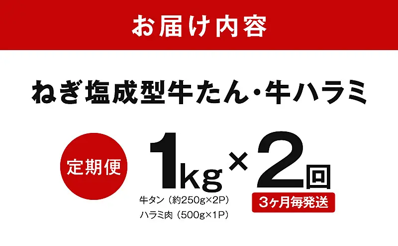 099Z444 【定期便】牛タン&牛ハラミ お試し 1kg 焼肉セット【2026年2月&5月発送】