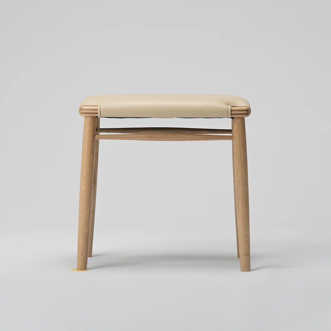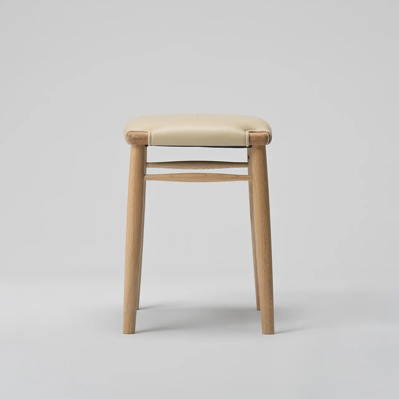 【木と暮らしの工房】 H.O.スツール 4-leg <樹種:ナラ/座面:本革(ベージュ)>