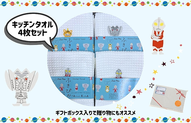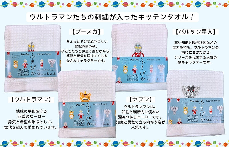 抗菌防臭効果つきの人気キッチンタオル「ふきぴか」に、可愛いウルトラマンと怪獣のデザインが仲間入りしました。