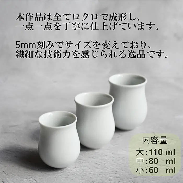 1つひとつ丁寧にろくろで仕上げた、美しいフォルムのぐい呑みです。