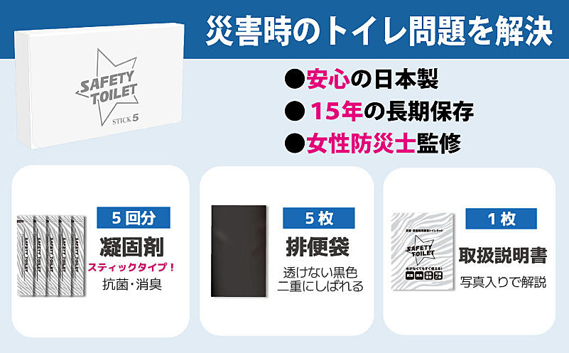 005A768 【スピード発送】SAFETY TOILET STICK5 非常用 簡易トイレ 携帯トイレ 防災 日本製
