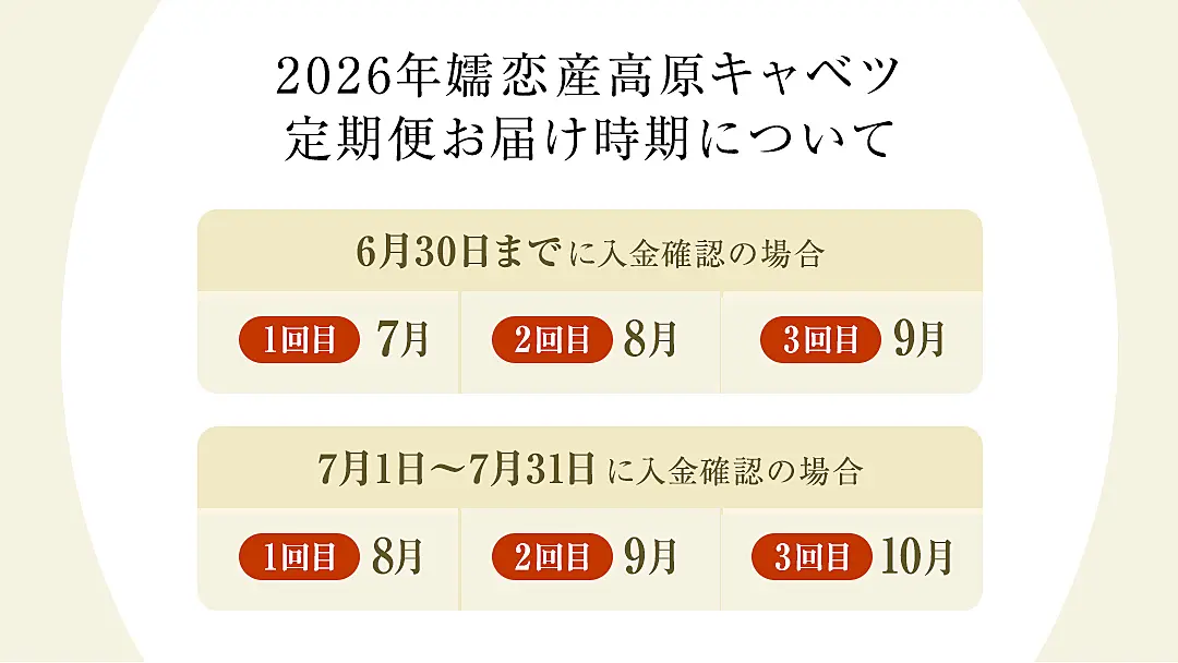 嬬恋キャベツを、毎月1回、定期便でお届けします。
