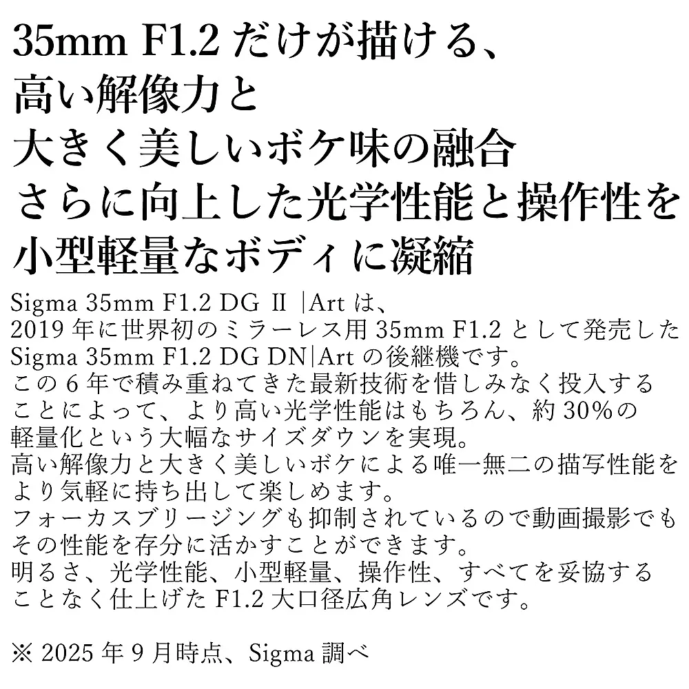 SIGMA 35mm F1.2 DG II | Art Lマウント用