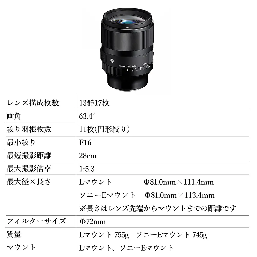 - 【名称】SIGMA 35mm F1.2 DG II | Art
