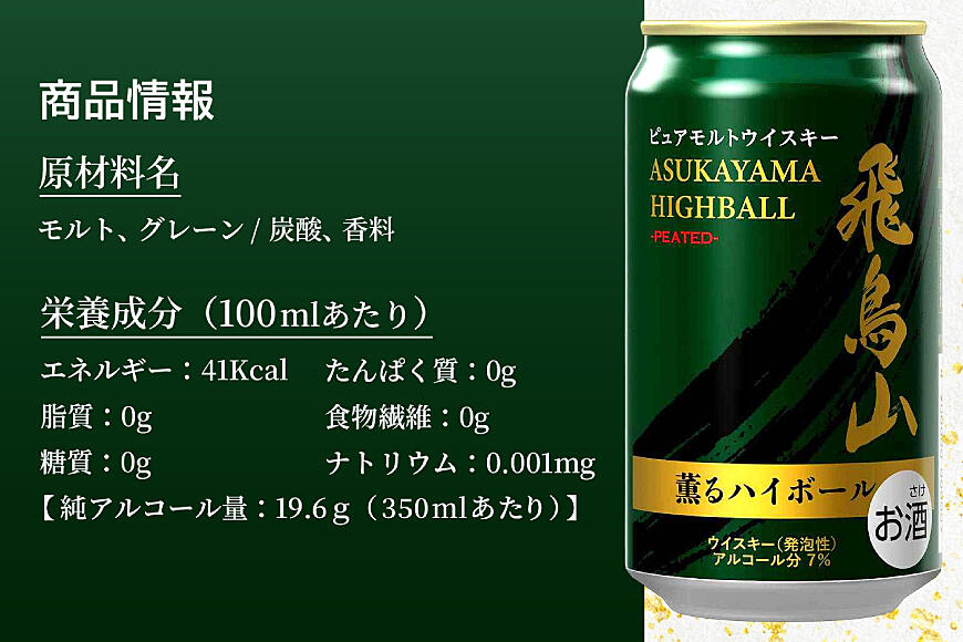 ハイボール 飛鳥山 ピーテッド薫るハイボール 350ml 缶 [カクヤス 山梨県 韮崎市 20745348]