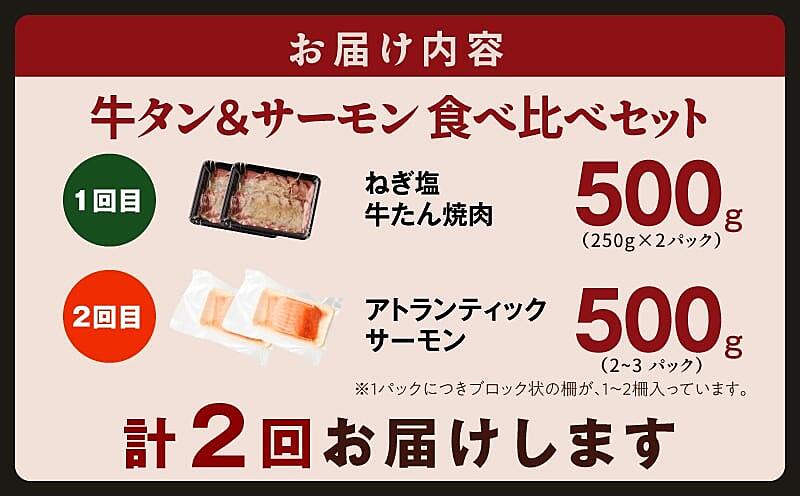 099Z477 牛タン&サーモン 食べ比べ 定期便 2回 総量1kg