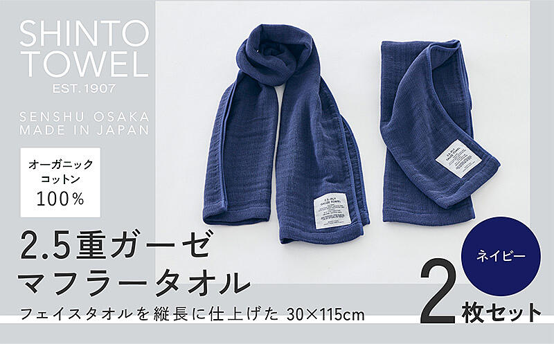 015B555-1 SHINTO TOWEL「2.5重ガーゼ・マフラータオル」(ネイビー)2枚セット オーガニックコットン