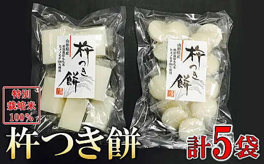 特別栽培米ヒメノモチ 杵つき餅5袋セット (丸餅2袋・角餅3袋) 『(株)黒澤ファーム』 山形県 南陽市 [550]