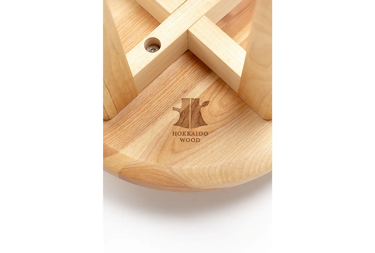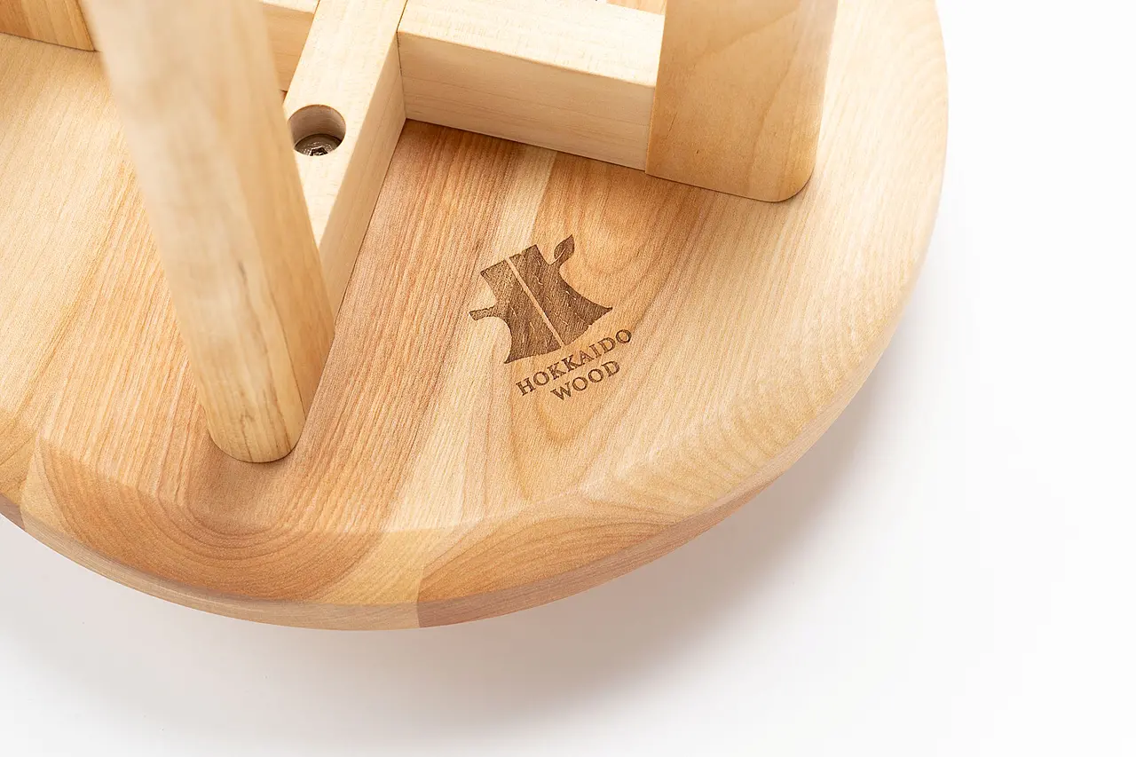 座面の裏には、北海道産の木材を使用した製品のあかし【Hokkaido Wood】のロゴ入り。