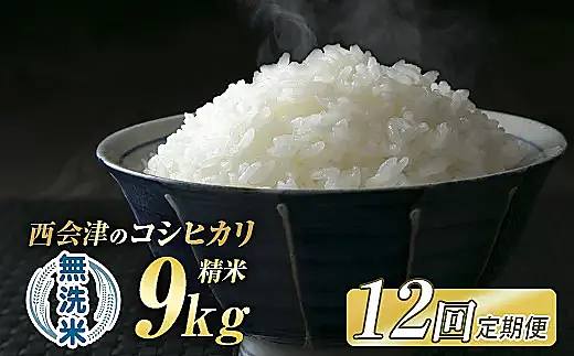 <定期便12ヶ月> 西会津産米「コシヒカリ」 無洗米 9kg (4.5kg×2袋) F4D-2010