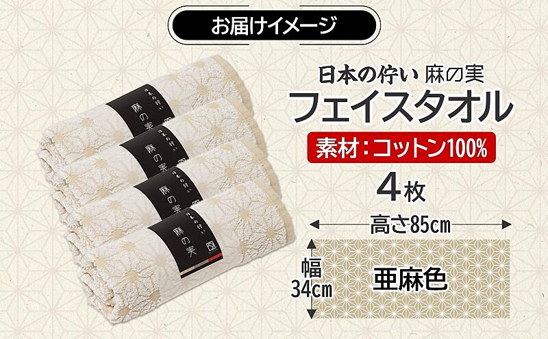 - 日本の佇い 麻の実 フェイスタオル 亜麻色 4枚セット