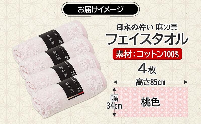 - 日本の佇い 麻の実 フェイスタオル 桃色 4枚セット