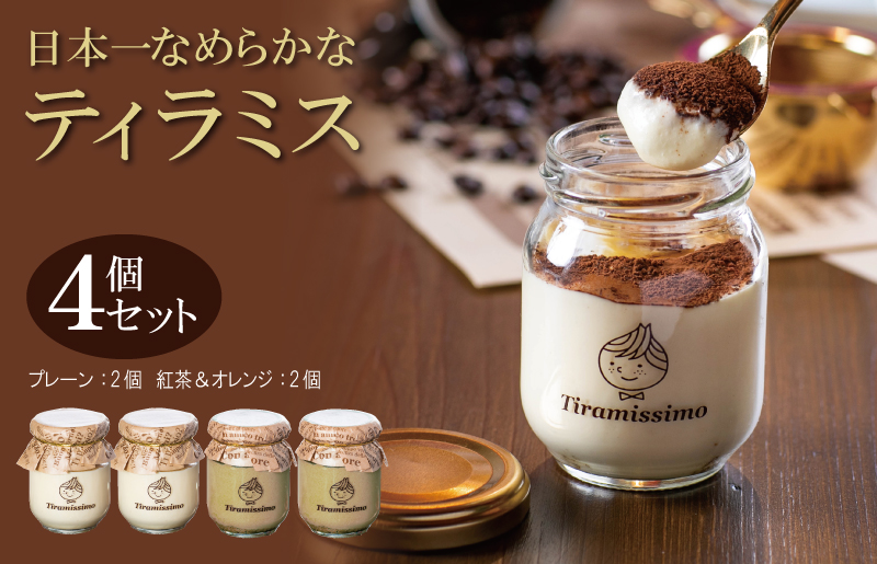 010B1831 【スピード発送】日本一なめらかティラミス 4個セット(プレーン2個/紅茶&オレンジ2個)