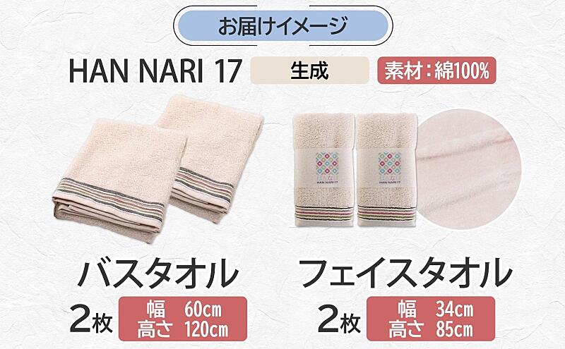 - HAN NARI 17 フェイスタオル&バスタオル 各2枚 生成