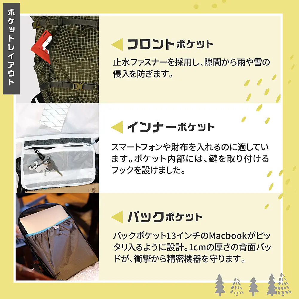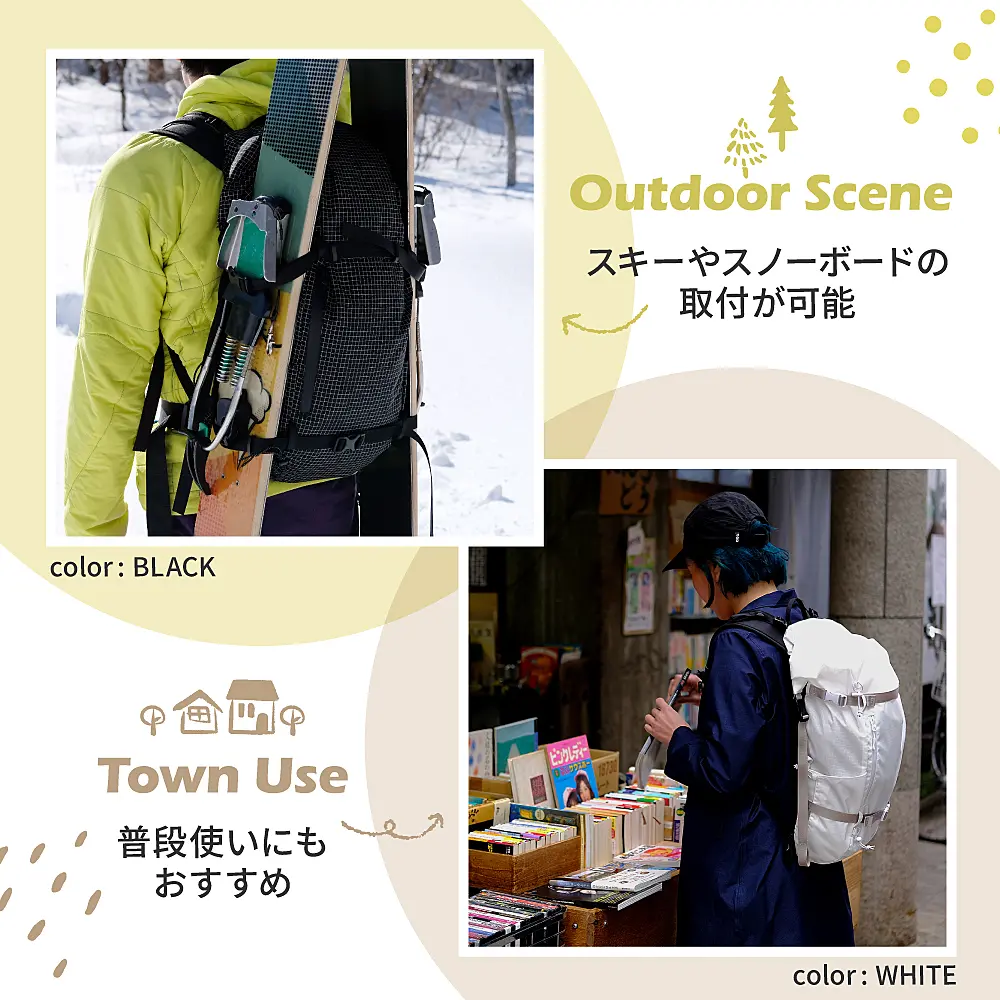 普段使いからトレッキング、スノーハイキングまで、一つのバックパックで対応できるようにしました。